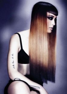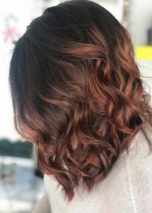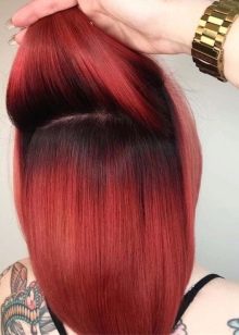 - Ombre. L'uso di questa tecnica in combinazione con le tonalità rosse dei capelli diventa rilevante. Una miscela di rosso e castagna, nero e rame, biondo e rosa sembra incredibilmente impressionante, dona ai capelli un volume extra. Se le transizioni orizzontali dei colori sono stanche, puoi scegliere un cupo, in cui lo stiramento si verifica anche verticalmente, fornendo un effetto 3D.