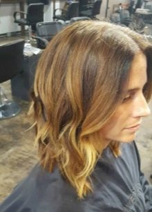 - Splash Light - colorazione “rigata” di tre colori ravvicinati con allungamento orizzontale. I confini risultanti dovrebbero essere chiaramente visibili, formando l'effetto dei raggi del sole che cadono sui fili in un angolo obliquo. Questa è un'opzione molto efficace per capelli lisci di media lunghezza.