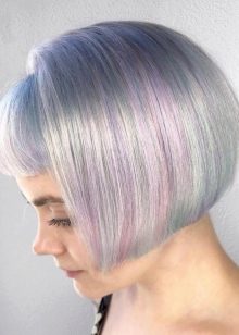 Ottimo lavoro qui esperimenti con colori biondi alla moda: fragola e altra bacca, salmone, corallo. Il colore blu saturo anche in perfetta armonia con questo tipo di tagli di capelli, ti permette di fare un'immagine della giovinezza. Cerca con successo le opzioni di capelli di media lunghezza per colorare "tinsel" o biondo sporco.