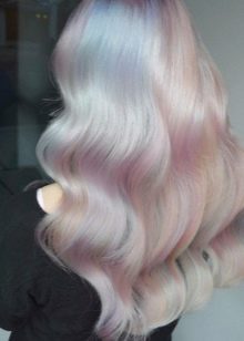 - Opale di Hollywood - Questo è un vivido esempio di implementazione non standardizzata della tecnica balayazh. Tre colori: biondo platino e pastelli blu e rosa creano un gioco di luci incredibilmente sfaccettato, che ricorda i riflessi e gli straripamenti della superficie della pietra naturale. Questa opzione di colorazione è già stata apprezzata dalle starlet e dalle star riconosciute della "fabbrica dei sogni".
