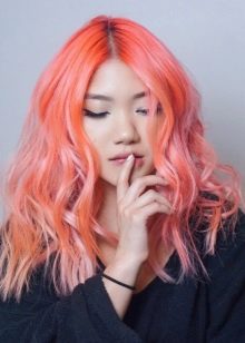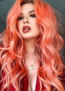 - Tinta per capelli corallo. Il colore brillante e succoso è riconosciuto come un vero successo del prossimo anno. Anche le icone di stile riconosciute, che sono state a lungo fedeli alle bionde, oggi indossano ciocche rosa e rosse tra i capelli.