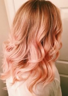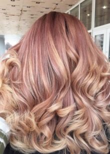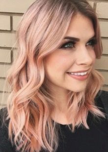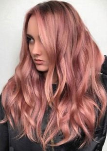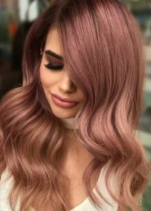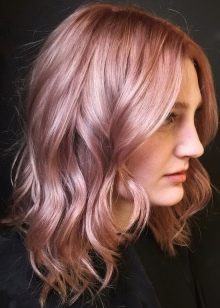 - Oro rosa Questa è una delle tonalità più insolite della nuova stagione. Combina tonalità penetranti di rame, la leggerezza del biondo, la grafica inerente a tutti i colori vivaci. Invece di rosa saturo, qui domina il pastello. Per le brune, puoi scegliere una versione scura del colore nei toni del rosa-marrone, evitando schiariture radicali.