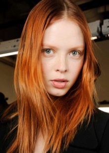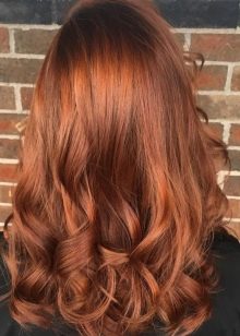 - Zucca. Il brillante colore della zucca è vicino all'ombra delle foglie cadute, ma ha più pigmenti arancioni. Le associazioni "culinarie" sono esacerbate dal tono rosso speziato della base, che è diluito con riflessi di rame. Questo colore è adatto a donne di tutte le età, rinfresca, enfatizza i lineamenti del viso. È piuttosto nobile per mettere in risalto l'immagine di una donna matura, e su una giovane ragazza, il tono di zucca dei suoi capelli sembra audace ed elegante.