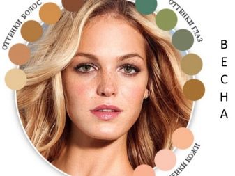 - "Primavera" - Colore caldo con colori tenui. La pelle è leggera, traslucida, con una sfumatura color pesca, gli occhi sono chiari, dal grigio al verde. La combinazione di colori naturale dei capelli in queste ragazze varia dal biondo chiaro al castano, con accenti di miele e grano. Durante la colorazione, evitare toni di grigio e nero radicali, colori freddi, tinta in un colore non è raccomandato.