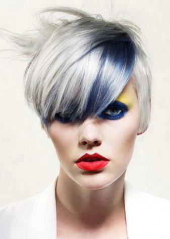 I corti tagli di capelli corti sono il campo migliore per un esperimento colorista. Le acconciature grafiche sono più adatte per l'applicazione di colombra o tintura chiara brillante.Per i capelli lunghi, è meglio usare ombre, bronding, shuttle o balayazh testati nel tempo, per evitare l'essiccazione radicale dei capelli. Quadrato laconico, bob o cascata: acconciature che richiedono una lunghezza media di ciocche.