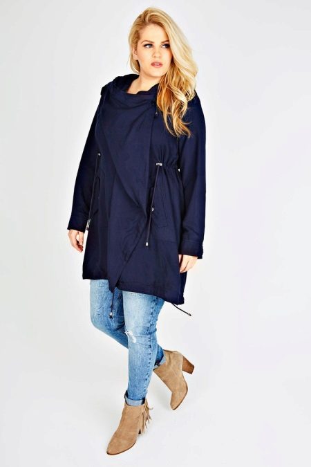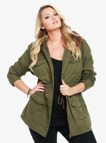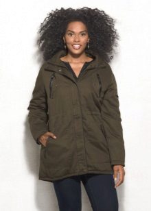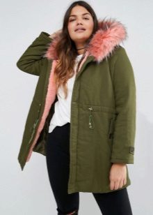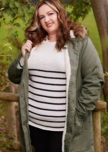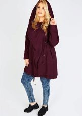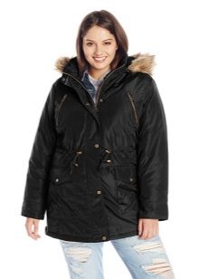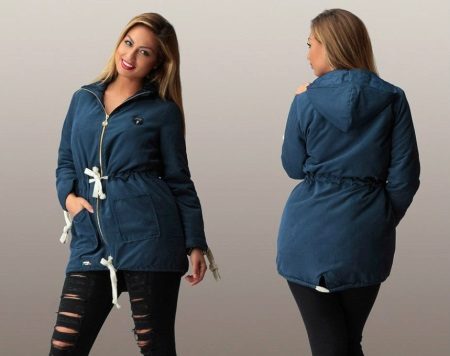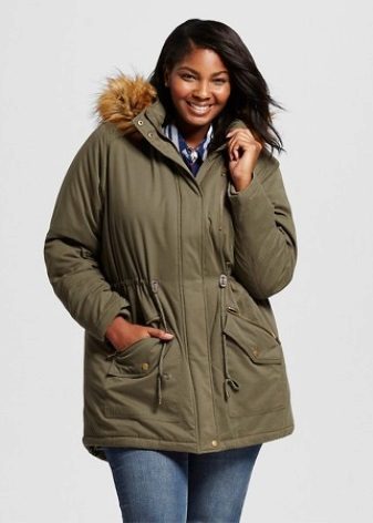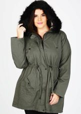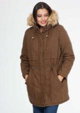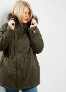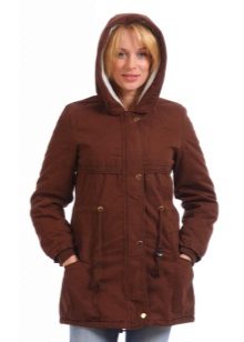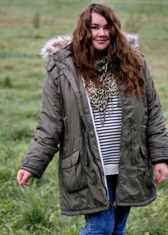Le donne inclini alla pienezza sono i parchi consigliati del taglio più libero e dritto, che coinvolgono maniche larghe e un cappuccio voluminoso. Nel caso in cui la figura di una donna assomigli a una clessidra, il cordoncino dovrebbe trovarsi in un posto classico - in vita.