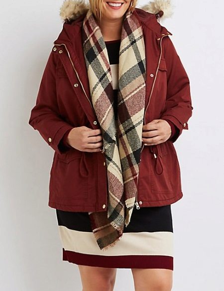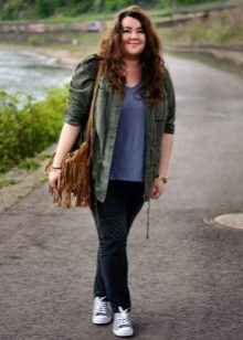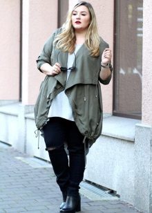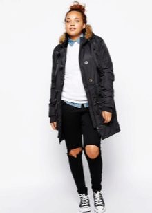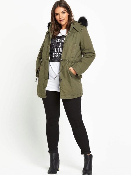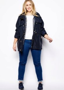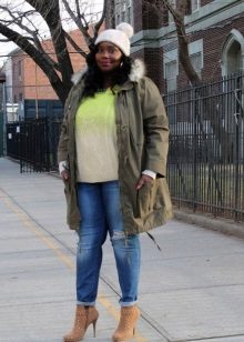 Tuttavia, i parchi più brevi non sono un tabù per le donne corpose. Con la loro combinazione competente con gonne lunghe, pantaloni rigorosi o jeans firmati classici, anche un modello corto sembrerà e attirerà correttamente l'attenzione.