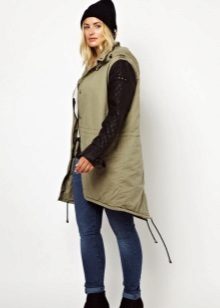 Per gli amanti di soluzioni insolite, i parchi con le maniche corte o senza di loro diventeranno una vera scoperta. Questa è una specie di simbiosi di giacca e gilet a tutti gli effetti, quindi le tendenze della moda moderna consentono di indossarle sopra una giacca di pelle, una giacca o persino un maglione originale.