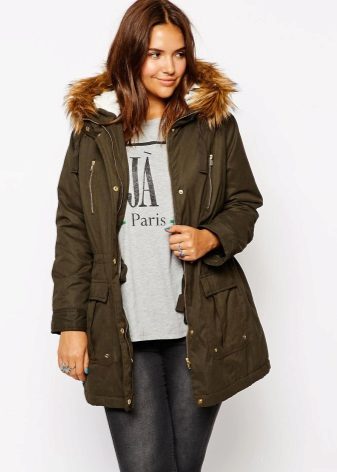 Le calde variazioni invernali dei parka con giacca sono cucite con una fodera di winterizer sintetico o pelliccia. Il lato esterno può essere diverso: dal tessuto impermeabile o in pelle ai tessuti e alla pelle scamosciata. Alcuni modelli combinano contemporaneamente molti di questi materiali, ad esempio inserti in pelle o pelle scamosciata su un tessuto impermeabile sembrano molto interessanti.