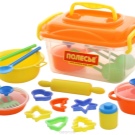 - Un set di piatti e prodotti per bambini. La bambina, guardando come la mamma cucina la cena, vorrà provare a farlo da sola. Ma è ancora troppo piccolo per poter raggiungere la stufa o fidarsi di un coltello da cucina affilato per tagliare il cibo. In questo caso, un set di giocattoli verrà in soccorso, che comprende pentole, piatti e tazze con cucchiai: tutto ciò che è necessario per un piccolo cuoco. La stessa hostess sarà in grado di "cucinare" una cena abbondante e invitare sua madre e suo padre. Tuttavia, in questo caso, è importante assicurarsi che il kit non contenga elementi troppo piccoli che il bambino potrebbe inalare o deglutire.