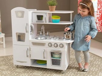 - Giocattolo elettrodomestici, mobili. Il bambino arriverà felicemente in una casa delle bambole o in un angolo dell'appartamento, "inviterà" bambole, animali e cucinerà per loro da mangiare. In questo caso, si formano abilità comunicative, socializzazione.