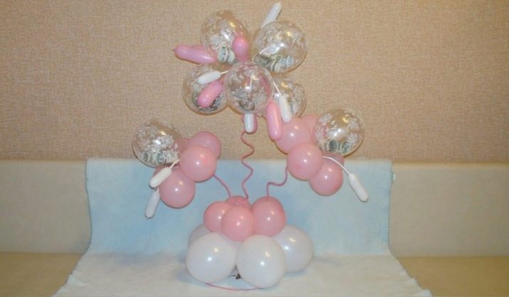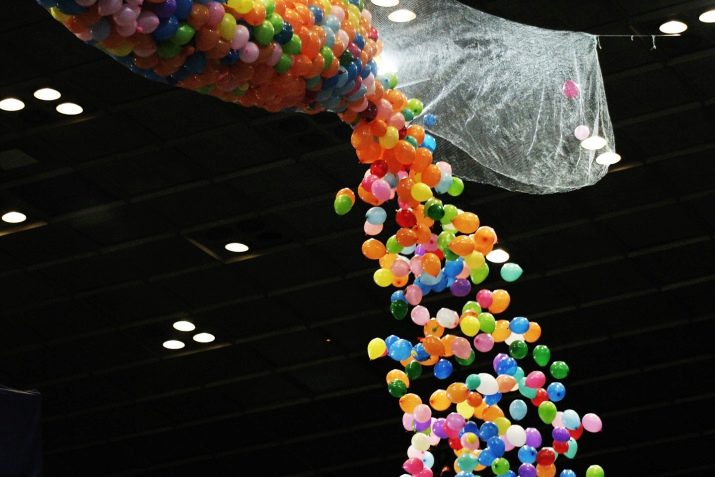 Ad esempio, puoi riempire palloncini trasparenti con diverse carte lucide e gas speciali, grazie ai quali non si appenderanno, ma tenderanno al soffitto. Le palline riempite possono essere fissate sul pavimento o lasciate andare liberamente sotto il soffitto. Nel secondo caso, il contatto con i dispositivi di illuminazione dovrebbe essere evitato, poiché con un forte surriscaldamento, le palle possono semplicemente scoppiare.
