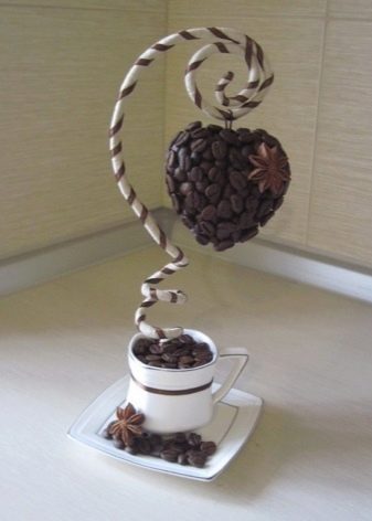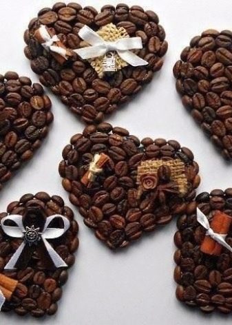 Tali mestieri sembrano decenti e allo stesso tempo emanano un aroma delicato di una bevanda corroborante che darà una sensazione di comfort domestico. I materiali principali per un tale regalo saranno chicchi di caffè di diverse dimensioni, forbici, colla, fili per cucire, vernici.