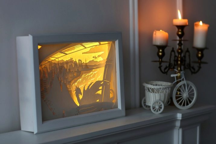 Puoi scegliere le immagini più interessanti in vista di animali o paesaggi, fiori o sagome di persone. Il diorama luminoso si adatterà perfettamente a qualsiasi interno moderno, aggiungendo mistero e lusso.
