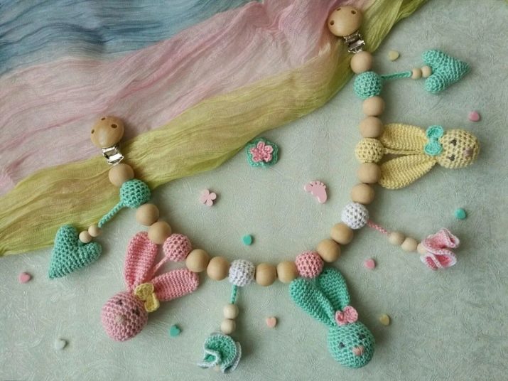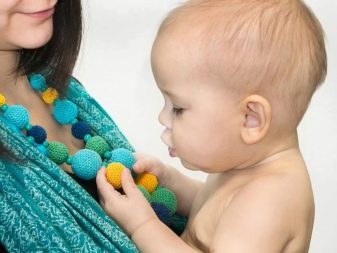 Quando si indossano sul collo della madre anziché sulle perline, le "madreperle" svolgono il ruolo di un giocattolo e facilitano la dentizione del bambino, sviluppano anche capacità motorie e aiutano molto nello studio di colori e forme. Puoi anche dare un titolare individuale per un manichino. Può essere realizzato con gli stessi materiali di "madreperla".