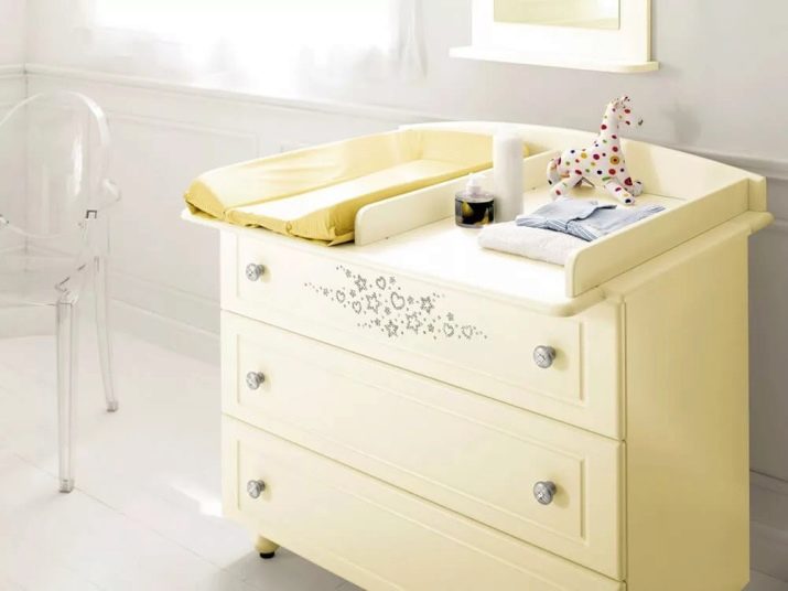 Può succedere che i giovani genitori non abbiano avuto il tempo di comprare un fasciatoio prima del parto, provare ad aiutare e comprarlo come regalo.È meglio acquistare un tavolo pieghevole speciale, ma alcuni genitori acquistano le credenze per cambiarle, il che è meno pratico, perché il bambino si comporta più attivamente dopo 5-6 mesi e sarà problematico avvolgerlo sulla credenza. Sul tavolo è molto più comodo indossare un bambino, ovviamente, la tabella dovrebbe essere presentata.