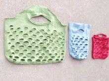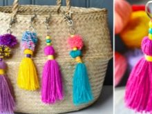 Una borsa o uno zaino in pelle saranno decorati con un portachiavi in filato colorato con pompon. Oltre al fatto che il prodotto nell'attuale stile boho sembrerà molto creativo, allieterà anche il genitore in una giornata nuvolosa. Se la mamma si preoccupa dell'ecologia dell'ambiente e non esce di casa senza una speciale borsa della spesa per i prodotti, allora puoi presentarla una nuova borsa realizzata con una vecchia maglietta.