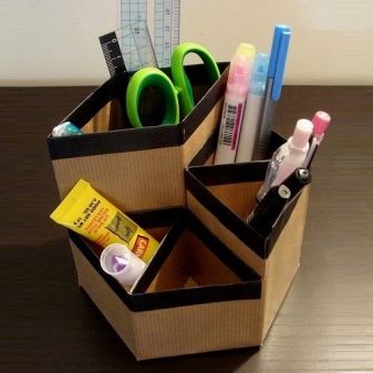 I mestieri di carta non differiscono per durata e resistenza, quindi si consiglia di donarli solo come decorazioni o come oggetti che non saranno soggetti ad un uso attivo. Come opzione, un regalo utile è uno stand di cancelleria. Per la sua fabbricazione, materiali come: