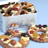 - Biscotti pan di zenzero di Natale con frutta secca e noci - possono avere la forma di un cuore, un albero di Natale, un orso, una mezzaluna o rappresentare il simbolo dell'anno. I biscotti al panpepato possono essere ricoperti di glassa, cospargere con noci tritate e decorare con motivi al cioccolato. I biscotti di panpepato possono essere di piccole dimensioni e confezionarne alcuni in bellissimi barattoli o scatole. E puoi fare un pan di zenzero grande e avvolgerlo con mica trasparente o avvolgerlo in un sacchetto di carta e vestirlo con bellissimi nastri. Esistono molte opzioni di imballaggio: tutto dipende dai tuoi gusti, desideri e capacità.