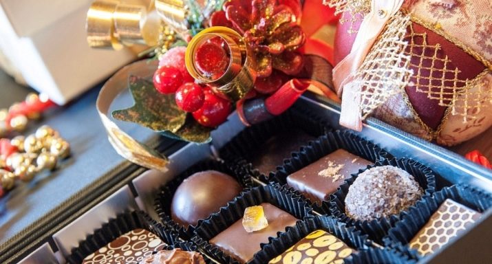 I regali dolci possono essere acquistati nella versione finita. - può essere un set di dolci assortiti in una confezione festiva, una scatola di cioccolatini, una scatola splendidamente decorata di marshmallow o marmellata, biscotti in una lattina con un tema di Capodanno.