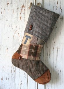Il modo più semplice per realizzare una calza festiva è dai tessuti. E essere in grado di cucire perfettamente è completamente opzionale, poiché i motivi sono molto semplici, puoi persino disegnare la tua forma preferita da solo. E le metà della calza possono essere fissate con una cucitura decorativa o semplicemente incollate con una colla speciale: si terranno strette.