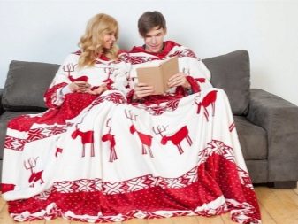 - Plaid con stampe di Capodanno. È facile fare un regalo del genere con le tue mani da un micro-peluche. Il comodo plaid universale è adatto a qualsiasi persona.