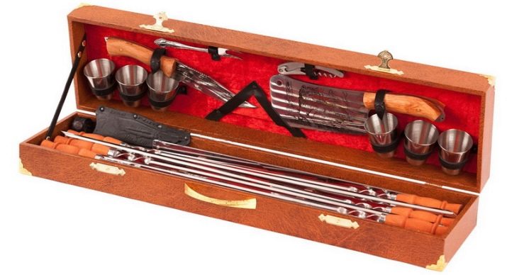 - Per chi ama rilassarsi nella natura, è possibile fornire un set di dispositivi per barbecue. Puoi mettere spiedini, un coltello, un pallone e pile in una confezione regalo.