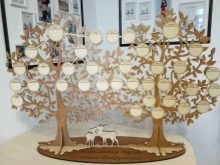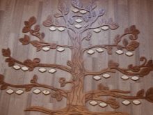 - Innanzitutto, vengono preparati disegni e schizzi, in base ai quali devono essere tagliati i motivi di tutti gli elementi e il tronco dell'albero futuro. Quindi i fotogrammi vengono misurati per le fotografie di famiglia e le scatole vengono preparate dalle schede. Come parte della necessità di prevedere fori per il successivo montaggio. Le cornici e le scatole fotografiche devono essere innescate.