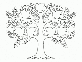 Questa tecnica di creazione di un modello è considerata la più semplice, ma se il maestro ha abilità ed esperienza artistiche, puoi creare tu stesso un disegno e un modello senza software. Per questo, allo stesso modo, gli schizzi di ogni parte vengono disegnati su fogli di carta separatamente e vengono registrati tutti i formati, quindi la versione su carta dell'albero decorativo viene trasferita su compensato.
