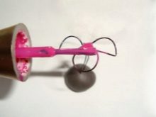 - Lo strumento di lavoro sarà un pennello per il trucco (se non è presente, funzioneranno anche una penna e una matita). All'estremità opposta della spazzola è necessario avvolgere il filo. Alla base del pennello, il filo deve essere schiacciato con le dita e fatto scorrere almeno 3 volte. Ottieni un cerchio, che diventerà una nuova foglia. Naturalmente, il cerchio è vuoto.