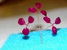 - Con le cerchie rimanenti devi fare lo stesso. Di conseguenza, il trifoglio incoronerà il ramoscello. Alcuni calcoli: se il diametro del pennello è di 5 mm e il piede dello stelo del trifoglio è di 5 cm, verranno spesi circa 14 cm di filo su uno di questi pezzi (è necessario prenderlo con un piccolo margine).