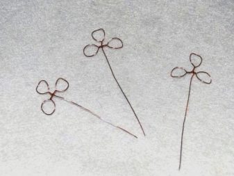 - Allo stesso modo, vengono prodotti altri 2 acetoselle. Solo il primo e il terzo elemento della gamba saranno leggermente più lunghi, 7 cm anziché 5 cm. Su quello la cui gamba è più lunga, è necessario avvolgere i restanti 2 elementi. Quindi, una parte composta da tre quadrifogli attorcigliati è chiamata base.