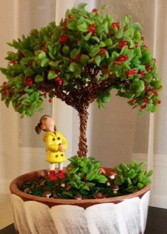 In questa master class, ognuno può organizzare il proprio lavoro a modo suo. È importante scegliere un vaso adatto e rendere il letto all'albero il più esteticamente piacevole possibile.
