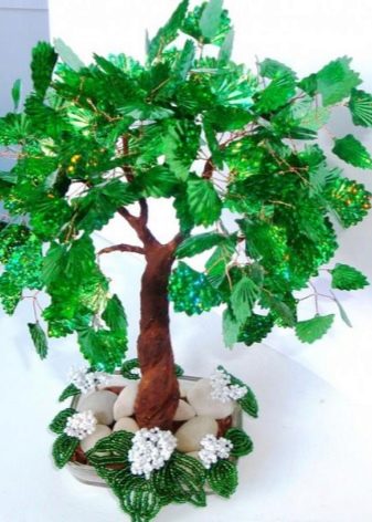 Questa descrizione della fabbricazione del legno ricorda il classico processo di creazione di un albero di filo di perline. C'è anche un vaso, un filo, ma nessuna plastilina: il gesso svolge la sua funzione. E per nascondere le sue tracce, il maestro fa una spolverata di piccole pietre di mare.