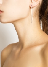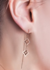 Orecchini - il threading ha smesso di essere popolare. Questi dispositivi di fissaggio non possono essere definiti comodi. Tale orecchino viene semplicemente infilato nell'orecchio e rimane lì a causa della stessa lunghezza e peso del prodotto su entrambi i lati del lobo dell'orecchio.