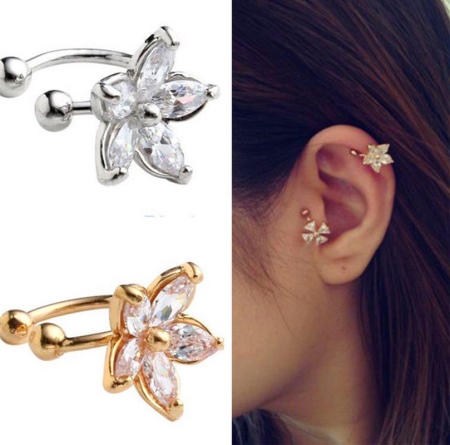 Clasp-cuff - una novità di gioiellieri, che ha rapidamente guadagnato popolarità. Grazie a questa chiusura, una donna può permettersi di indossare gli orecchini più pesanti in tutta comodità.