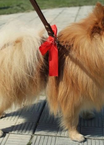 Collari e guinzagli in metallo saranno un'opzione assolutamente inappropriata, poiché influenzano negativamente l'attaccatura dei capelli, strappano il pelo, causano dolore al cane e ne rovinano l'aspetto. Inoltre, non scegliere prodotti con ornamenti decorativi da indossare ogni giorno: una varietà di strass, rivetti e altri accessori contribuiscono anche al deterioramento della pelliccia dello spitz.