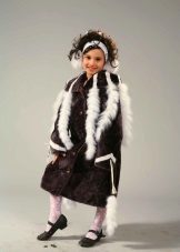 Un'affascinante pelliccia di volpe per una ragazza ha una comoda lunghezza del ginocchio che non ostacolerà i movimenti del bambino. Il design originale del modello è una combinazione di diversi colori di pelliccia uniforme: bianco e argento-nero. Il viso della bambina è incorniciato da un voluminoso cappuccio che non lascerà prendere un raffreddore anche in caso di freddo estremo. I legami con i pompon aggiungono un tocco malizioso all'immagine.