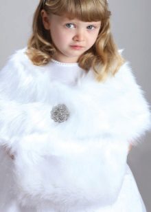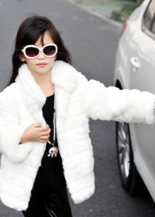 La pelliccia bianca (specialmente di un coniglio soffice o di una volpe artica) sembra luminosa ed elegante. Certo, questo colore è poco pratico per un bambino. Tuttavia, questa è un'ottima soluzione. Il nero non è accettabile per il modello di un bambino: sembra noioso.