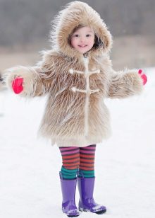 I prodotti lunghi sono anche poco pratici per le ragazze. La lunghezza ideale è al centro della coscia. Una cosa del genere riscalderà il bambino e non interferirà con lui quando cammina. La pelliccia trapezoidale può essere fino al ginocchio o leggermente più bassa.
