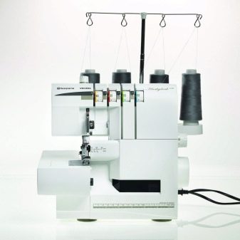 Overlock Husqvarna progettato per marcare i bordi con punti di larghezza e densità diverse. Sull'overlock, il bordo finito è molto più preciso e professionale rispetto a una macchina da cucire. Queste macchine da cucire sono industriali e domestiche, variano nel numero di ricariche.