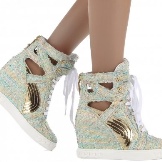Sembra interessante sneaker di tipo esagerato. Particolarmente degno di nota è il modello con una parte superiore girevole, se lo si desidera, può essere trasformato in stivali perforati estivi - quindi, si è contemporaneamente l'amante di due diverse paia di scarpe.