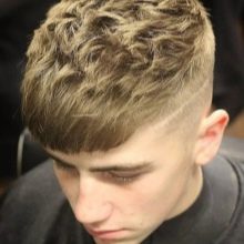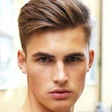 Ricorda l'opzione precedente, ma la macchina non è utilizzata su una nuca. È tagliato con le forbici e i capelli sono disposti in modo ordinato senza alcun "pasticcio creativo". I capelli sulla corona dovrebbero avere una lunghezza di 10 cm, i baffi vengono rispediti. Le restrizioni su questa acconciatura sono piccole: capelli troppo magri e capelli cattivi.