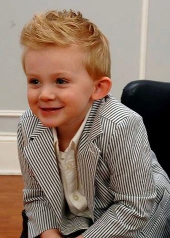 Questo criterio a volte influenza anche la selezione di acconciature per un bambino. in biondo e biondo C'è un tale vantaggio: acconciature voluminose allungate vanno a loro, tuttavia, anche i tagli di capelli corti non sono controindicati per loro. A questi ragazzi i parrucchieri raccomandano una scala, un cappello grunge, una piazza, una donna britannica e una canadese.