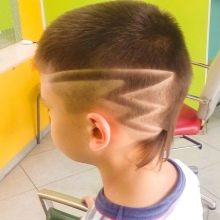 - Tagli di capelli con un motivo molto popolare tra adolescenti e ragazzi in età di transizione. Con l'aiuto di uno schema ritagliato sulla parte temporale o sul retro della testa, il "piccolo uomo" può dichiarare la sua personalità. La creazione di un modello, ovviamente, richiederà alcune abilità. Ma con la dovuta diligenza per padroneggiare questa tecnica funzionerà a casa.