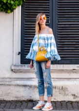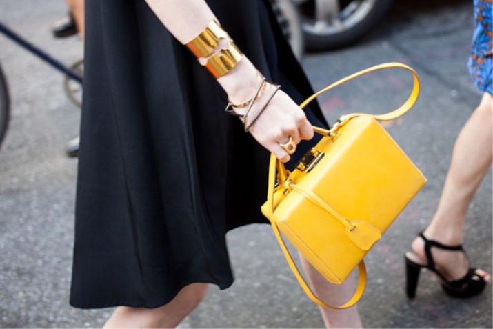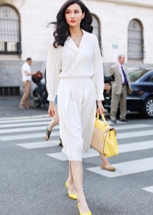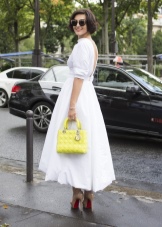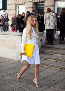 Per una festa estiva, crea un fiocco romantico e delicato con un abito corto azzurro e sandali gialli. Per enfatizzare il contrasto, indossa una sottile cintura di lamponi. Una brillante busta clutch e un discreto ciondolo saranno l'ultimo tocco.E se le feste non sono nei tuoi piani adesso, una piccola borsetta servirà come eccellente aggiunta allo stile aziendale. Una camicetta gialla brillante, una gonna nera, scarpe bianche e una borsa dalla ricca tonalità limone - e l'immagine è pronta.