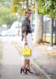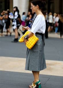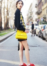 Una borsa media è un'ottima opzione per chi non ama le taglie troppo piccole o grandi. Puoi acquistare un modello giallo brillante con una piccola fibbia o il logo del marchio, sembrano sempre molto redditizi. Uno dei migliori è una borsa a tracolla o una piccola borsa. È fantastico se sono decorati con rivetti, strass o perline: per lo street style questo è il massimo. Una stampa floreale gialla, animali e motivi floreali sembrano delicati ed eleganti.