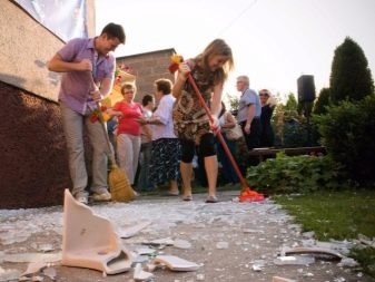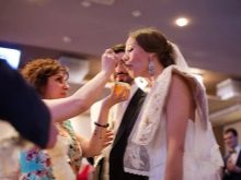 Ad esempio, mescolano ketchup, maionese, uova crude, prodotti a base di latte acido e i resti di cibo già mancante. E la sposa è cosparsa di questo liquido. Dopo questo, la sposa in questa forma, in compagnia degli amici del suo fidanzato, dovrebbe camminare per i luoghi pubblici, le strade della città. Questo è fatto per un motivo. Il fatto è che esiste una convinzione secondo cui una ragazza che ha vissuto una simile umiliazione pubblica in un matrimonio sarà molto più calma nel trattare i vari disaccordi e gli scherzi del suo giovane coniuge.