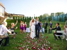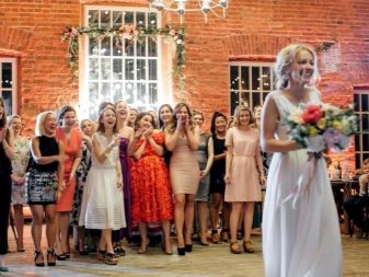 Inoltre, esiste una tradizione matrimoniale americana, che è già seguita in molti paesi del mondo. Parla della sposa che lancia il suo bouquet alla fine della serata. Quale delle ragazze non sposate prenderà questo bouquet felice avrà un matrimonio nel prossimo futuro.
