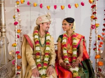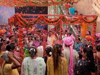 In India, una cerimonia di nozze è un vero spettacolo colorato. Molto spesso, i giovani si vedono per la prima volta solo a un matrimonio. Per tradizione, la celebrazione dovrebbe essere un numero enorme di fiori freschi e profumati. Si ritiene che gli aromi dei fiori terrestri siano molto popolari tra gli dei, e quindi tutte le preghiere e i desideri pronunciati in questo giorno saranno certamente ascoltati.